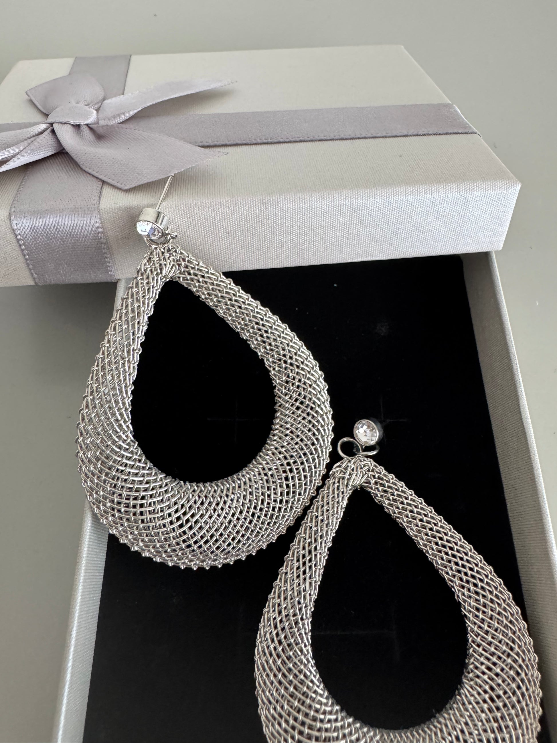 Brincos longos prateados