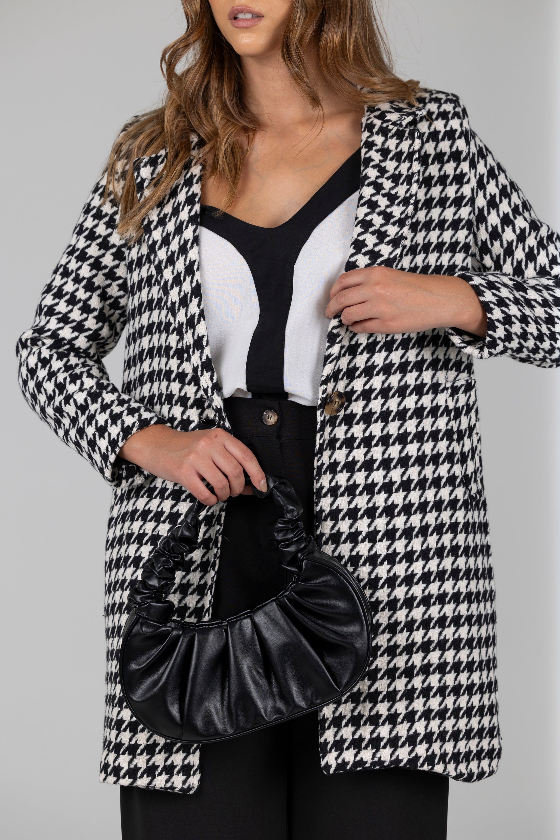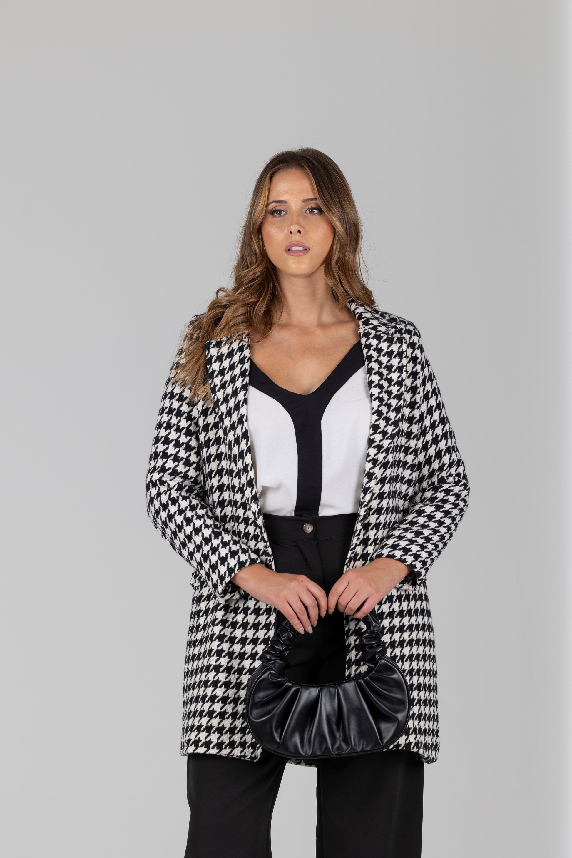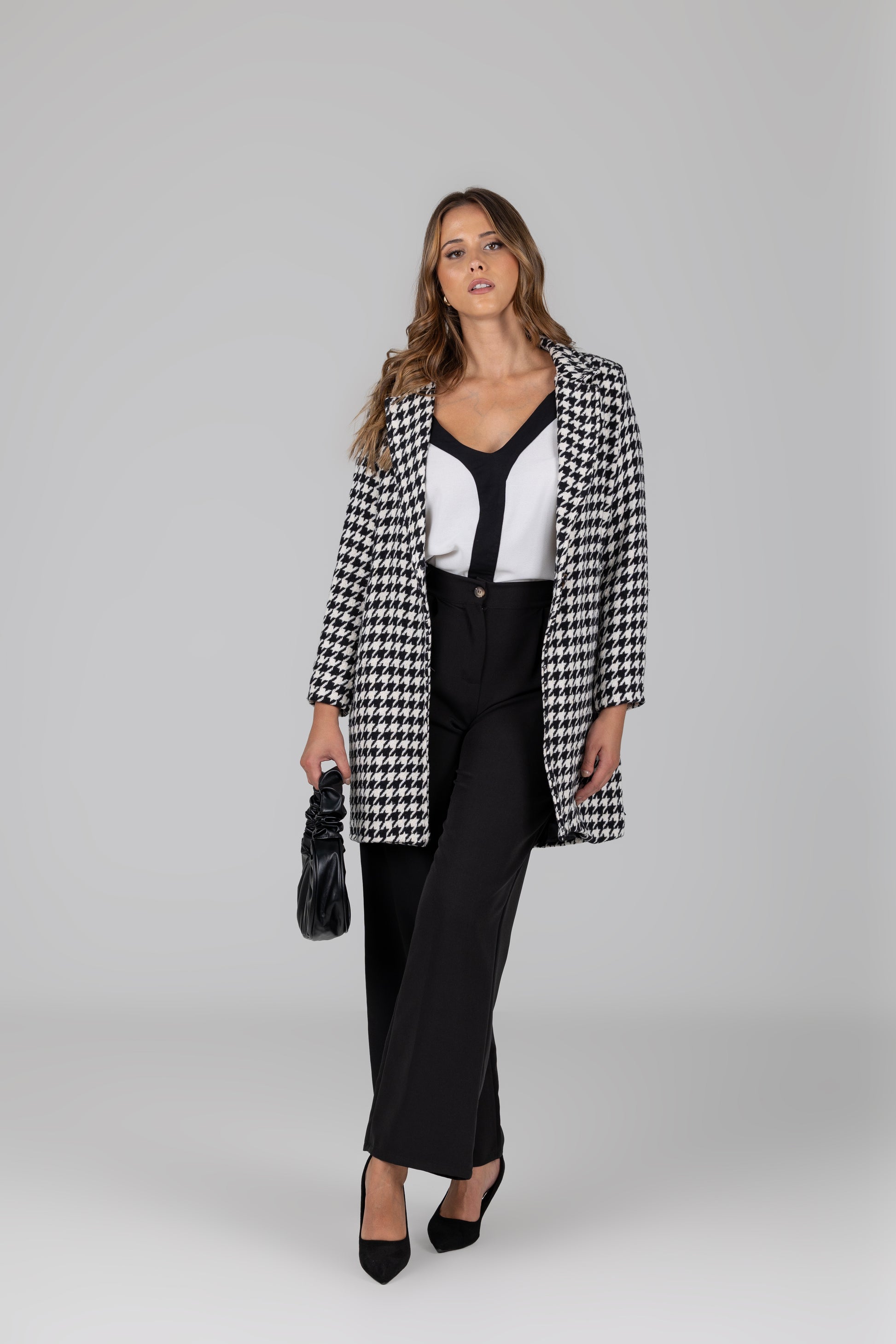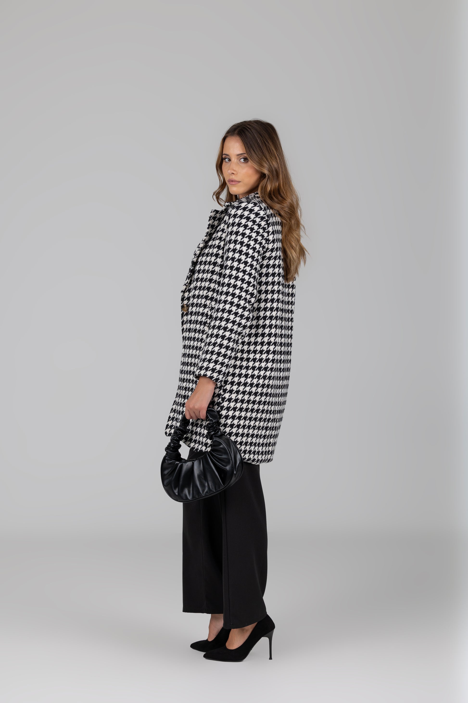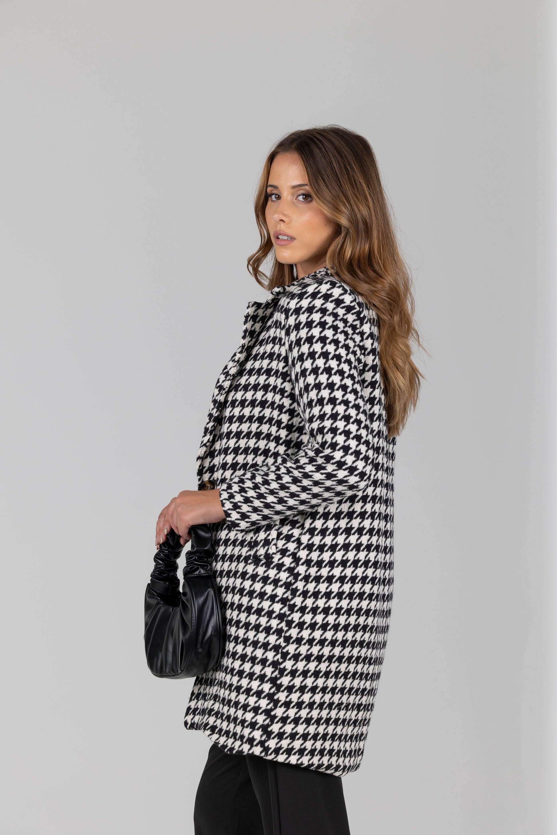 Casaco em Algodão Pied de Poule com botões e com bolsos