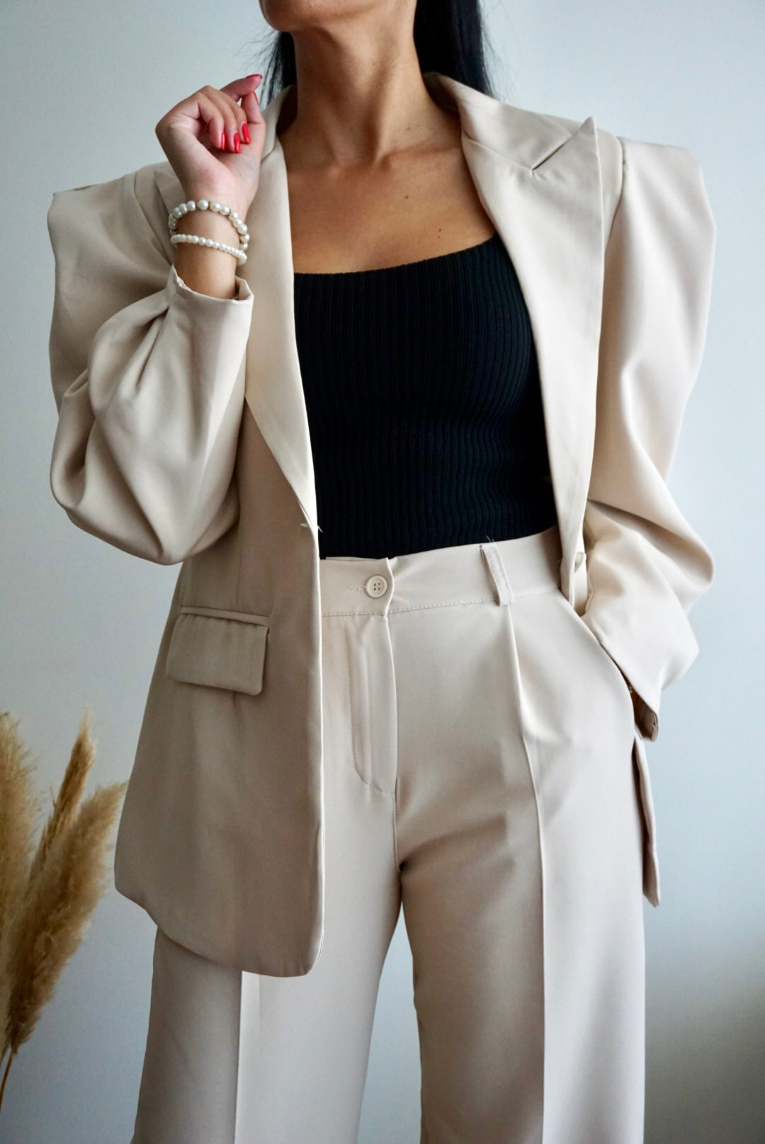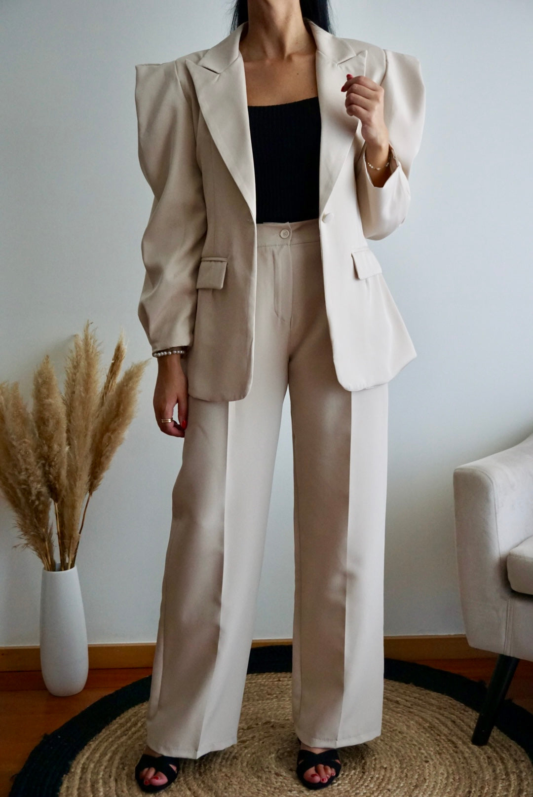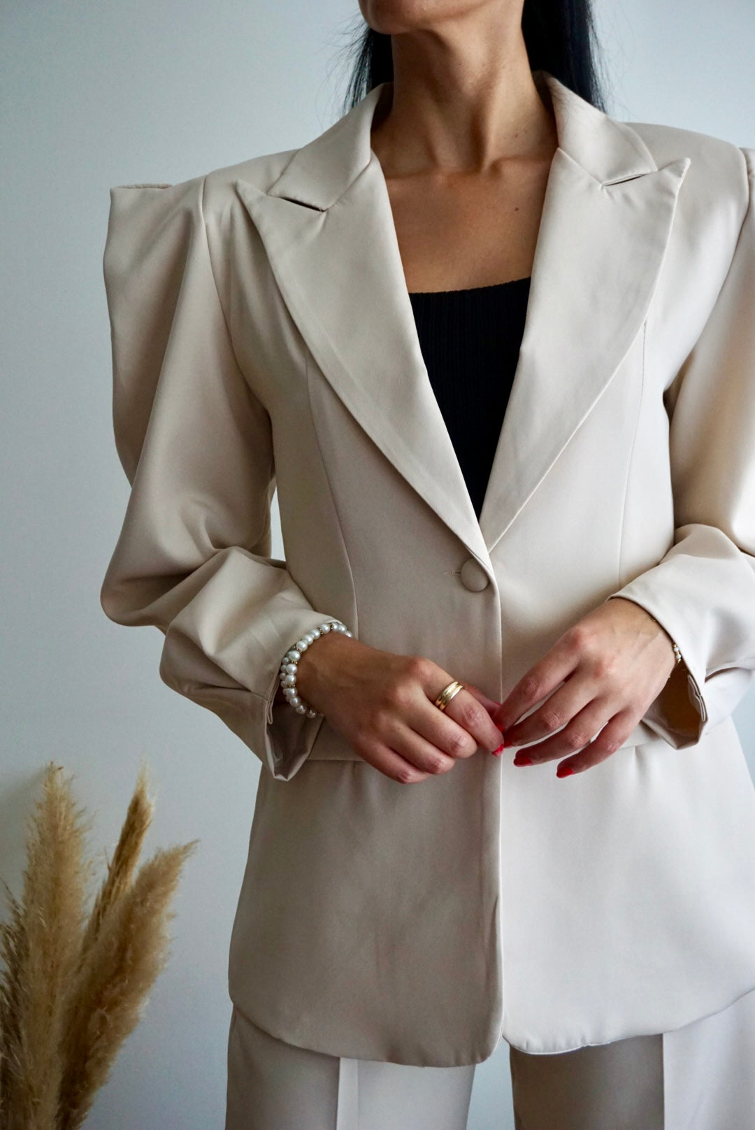 Fato creme - Casaco com ombreiras