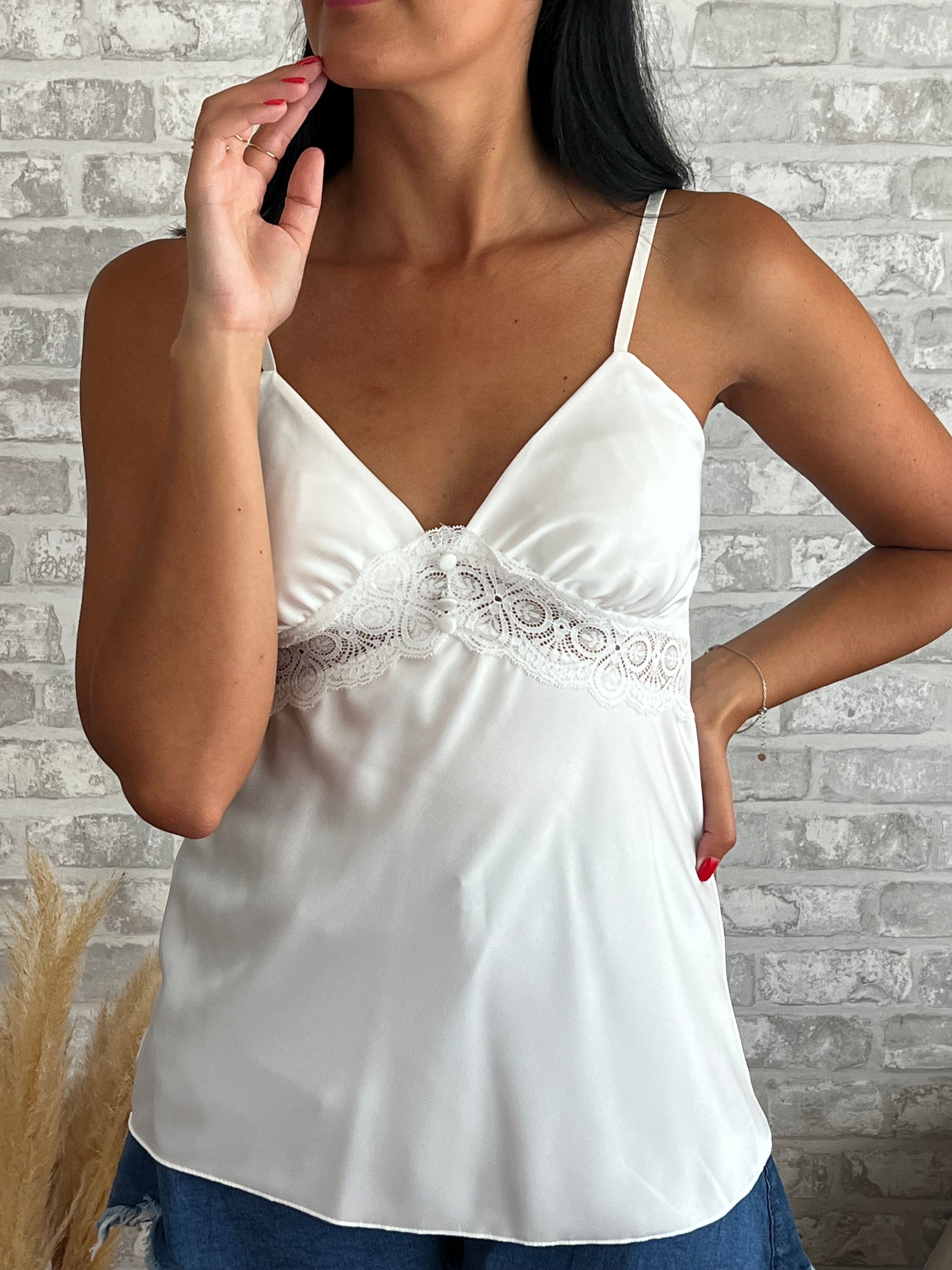 Top com rendinha e alças ajustáveis