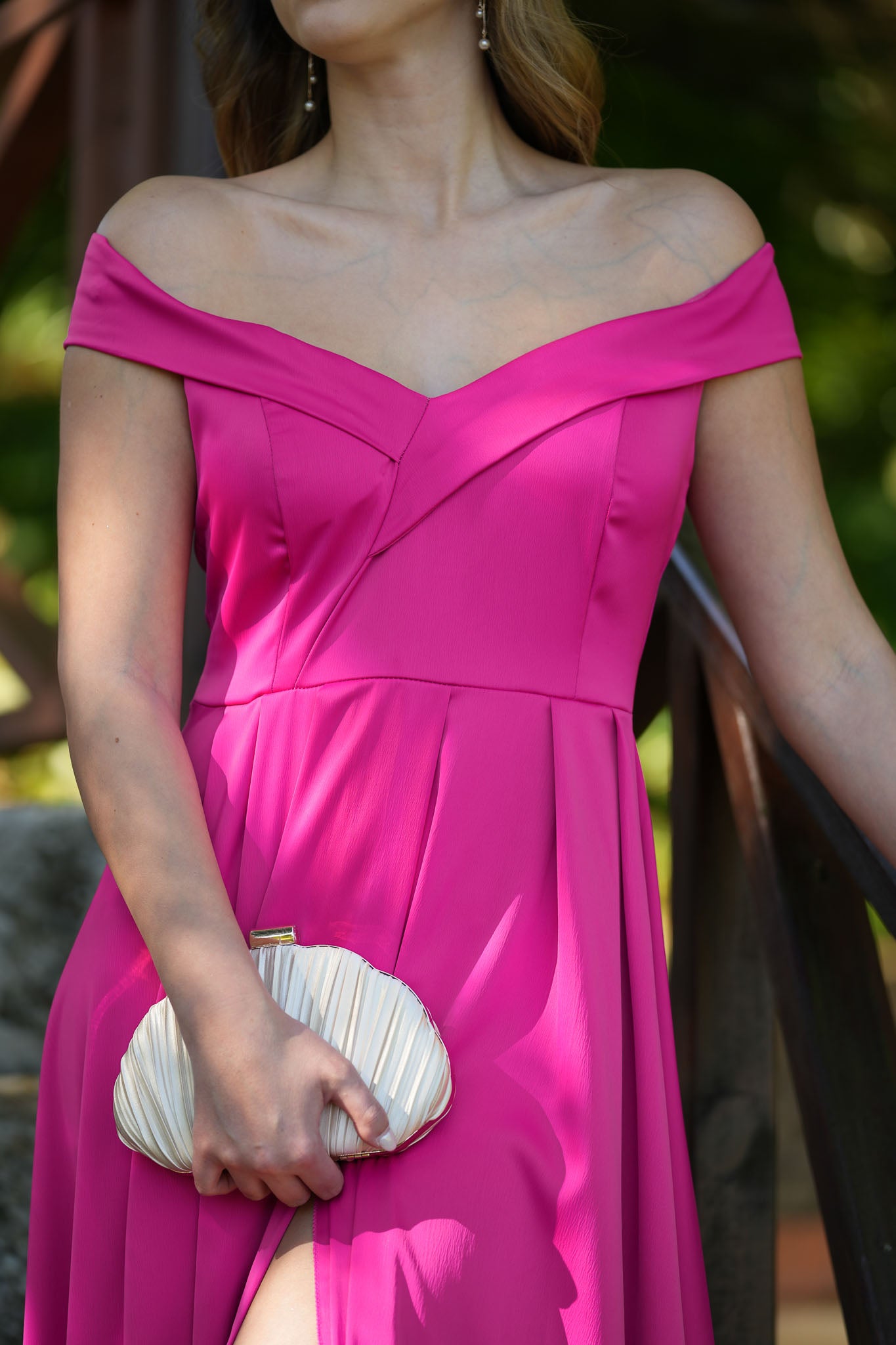 Modelo: Vestido longo elegante com saia fluida e abertura lateral